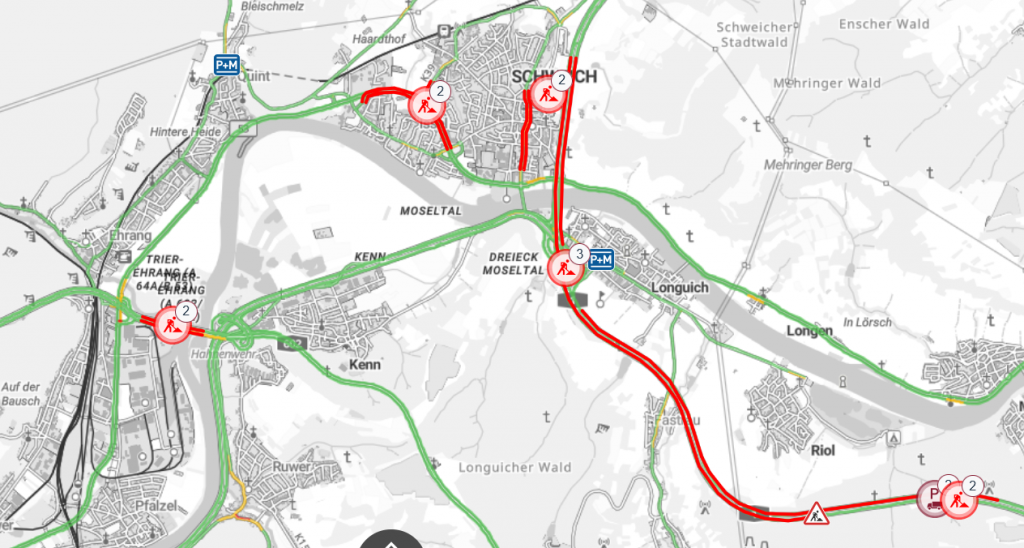 Nähere Informationen sowie Details entnehmen Sie bitte dem Mobilitätsatlas RLP unter mobilitaetsatlas.de („Baustellenumleitungen“ im seitlichen Menü unter „Einstellungen“ aktivieren).