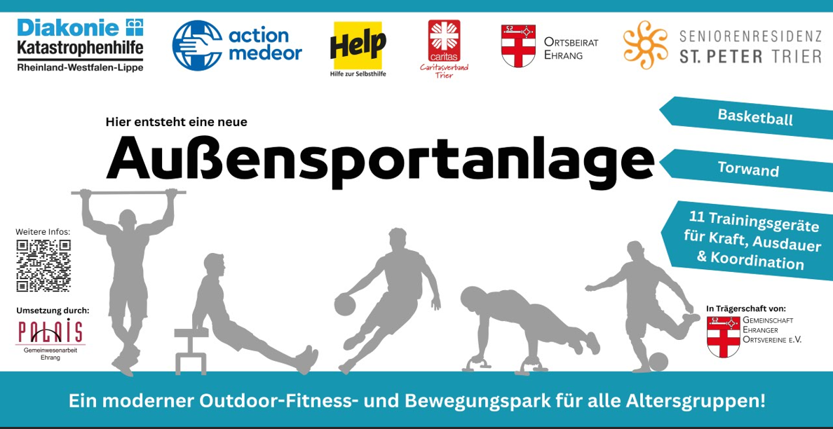 Warum: Wir wollen Menschen aller Altersgruppen die Möglichkeit geben, zusammenzukommen und sich an der frischen Luft fit zu halten und auszutauschen. Das Projekt ist einmalig in der Region Trier und grenzt sich durch seine Vielfalt an Geräten von anderen Outdoor Sportparcours in der Region ab. Damit wollen wir nicht nur was für die Menschen sondern auch für den Stadtteil Ehrang/Quint an sich tun. Vor allem vor dem Hintergrund zukünftiger Auswirkungen des Klimawandels ist es umso wichtiger, eine vernetzte Gesellschaft zu haben und sich gesundheitlich/sportlich fit zu halten.